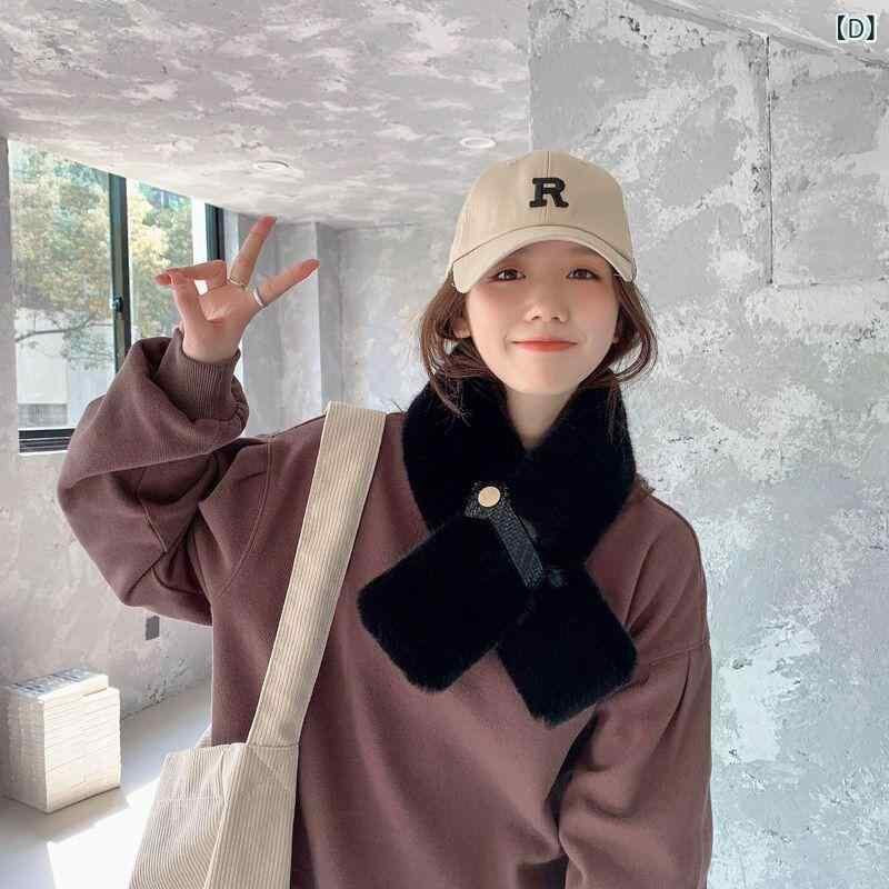 マフラー レディース フェイクファー ラビットファー調 クロス レザー 両面 リバーシブル 厚手 ボリューム 保温 防寒 秋冬 無地 韓国風 おしゃれ エレガント 高見え 多色展開