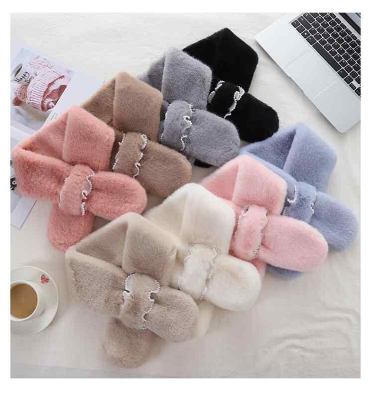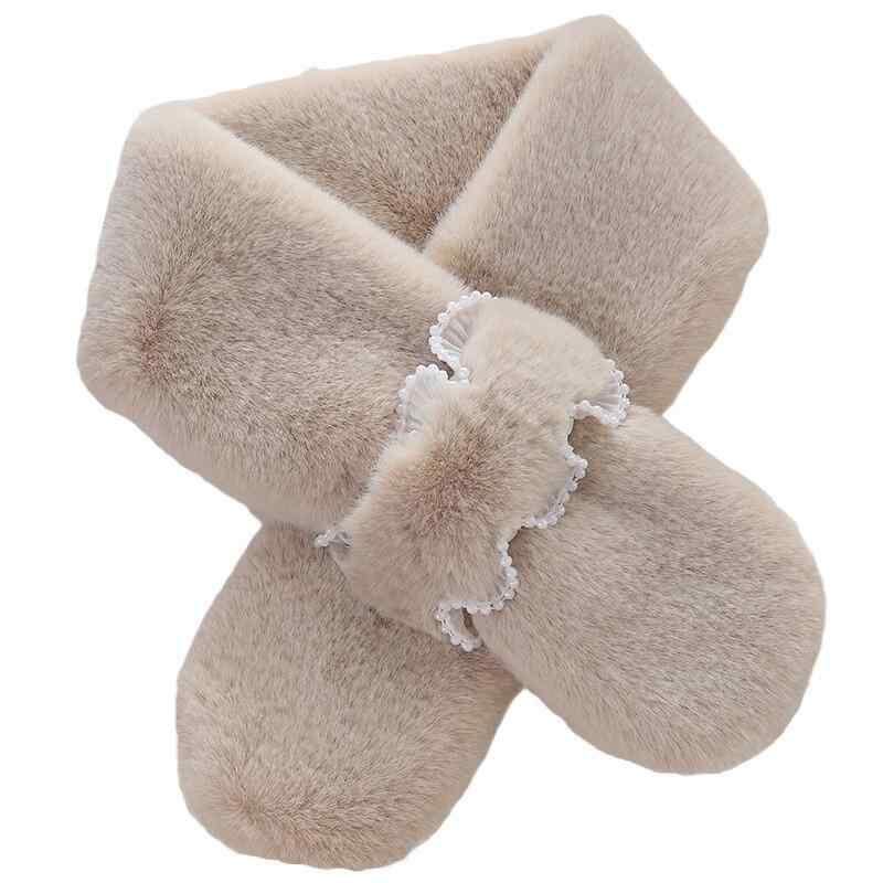 マフラー レディース フェイクレッキスファー パール装飾 厚手 防寒 暖かい ネックウォーマー ふわふわ もこもこ 上品 エレガント 韓国風 秋冬
