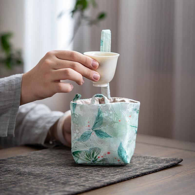 茶道具 錦織り 和柄 茶碗 湯呑み 急須 収納ポーチ ケース 布製 携帯用 トラベル 保護 衝撃吸収 軽量 コンパクト お出かけ ミニ巾着