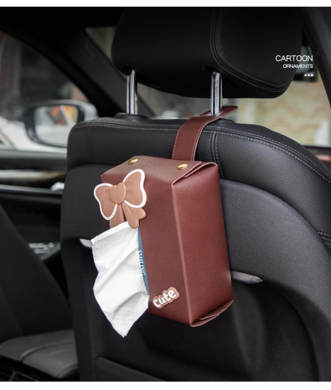 ティッシュケース 車載用 かわいい おしゃれ リボン 萌えペット レザー製 インテリア雑貨 カー用品 ドライブのお供