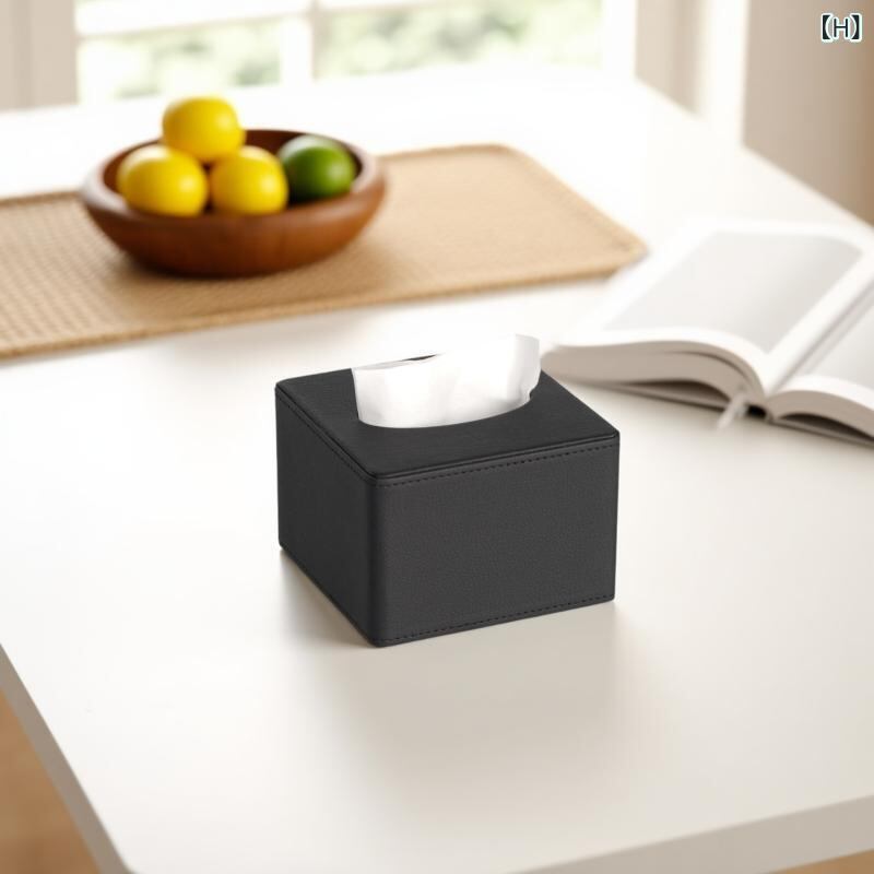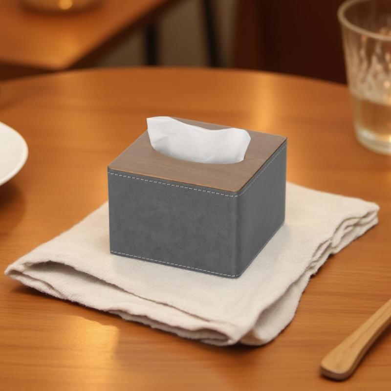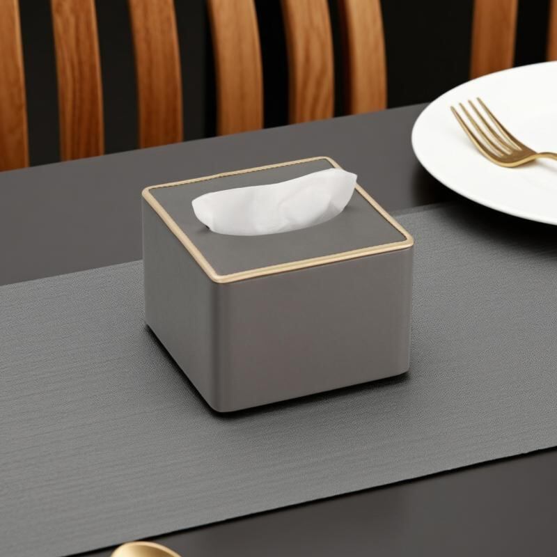ティッシュボックス ホテル 客室用 レストラン KTV バー 店舗 オフィス 卓上 レザー 革製 厚手 防水 スクエア型 シンプル モダン 高級感 木目調 金縁 ライチ柄