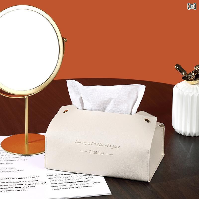 ティッシュケース シンプル 高級感 クリームカラー レザー 防水 多機能 卓上 家庭用 リビング ダイニング 寝室 ティッシュボックス ペーパータオルホルダー アイボリー