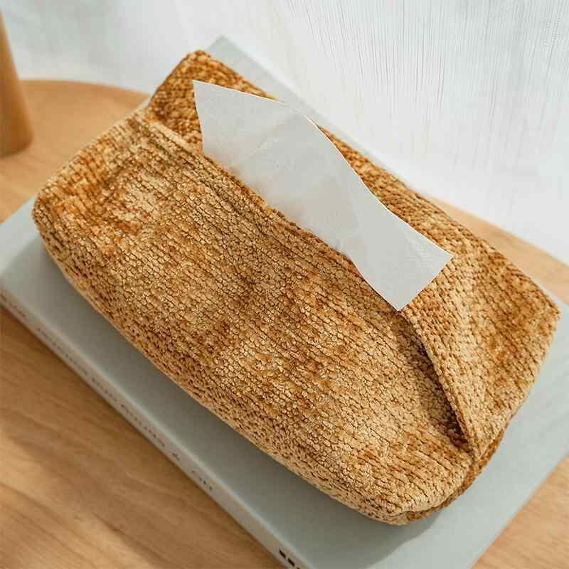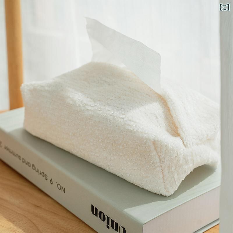 ティッシュケース シェニール織り 布製 ティッシュカバー ボックス 家庭用 リビング 卓上 車内 車載 モダン シンプル 北欧風 収納 高級感 インテリア ブラウン オフホワイト