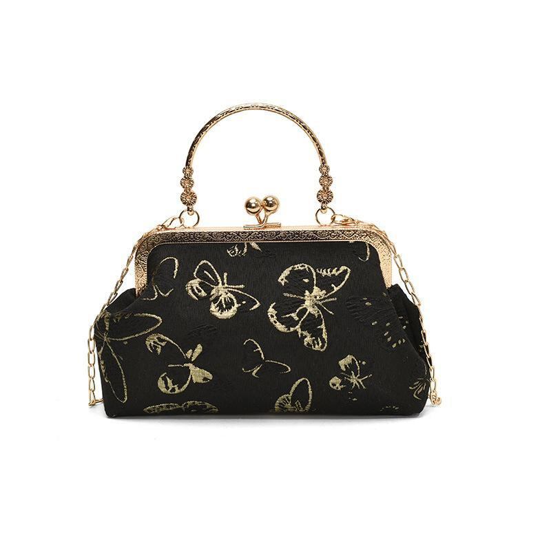 バッグ 中華風レトロ がま口 ワンショルダー クロスボディ ハンドバッグ 上質 シルク スクエア 横型 ロック金具 日常使い お出かけ コーデ万能 春夏 ブラック ホワイト ブルー ピンク