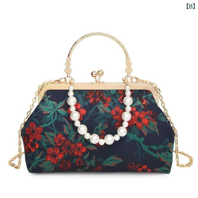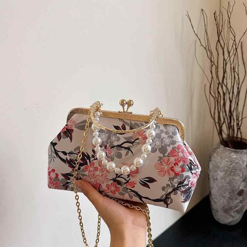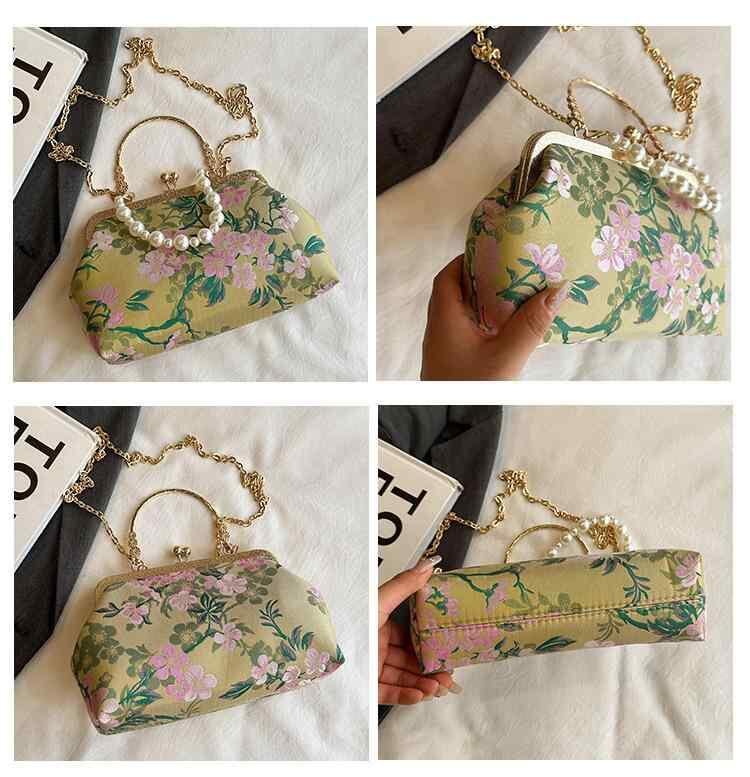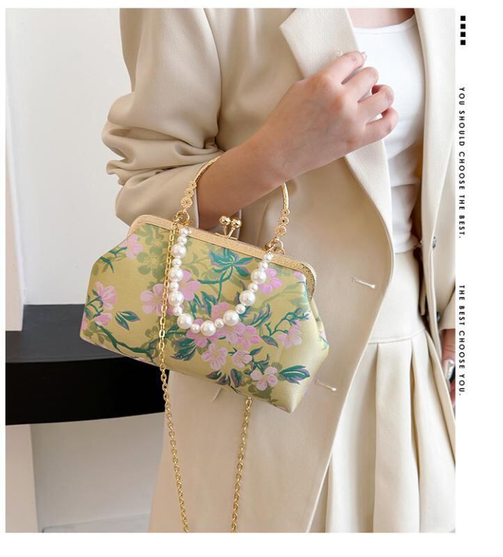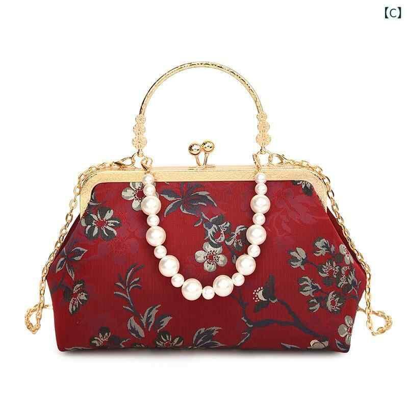 バッグ レディース がま口 ハンドバッグ ショルダーバッグ 斜め掛け鞄 チャイナドレス 漢服 和装 レトロ アンティーク 中国古典風 オリエンタル 刺繍 スクエア型 合皮 軽量 普段使い お出かけ 万能 多色展開