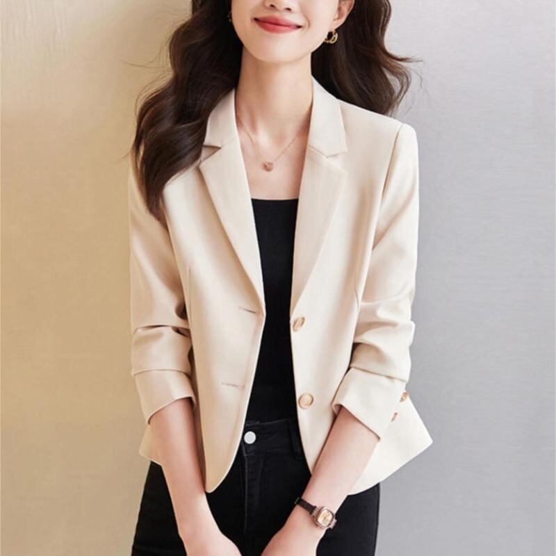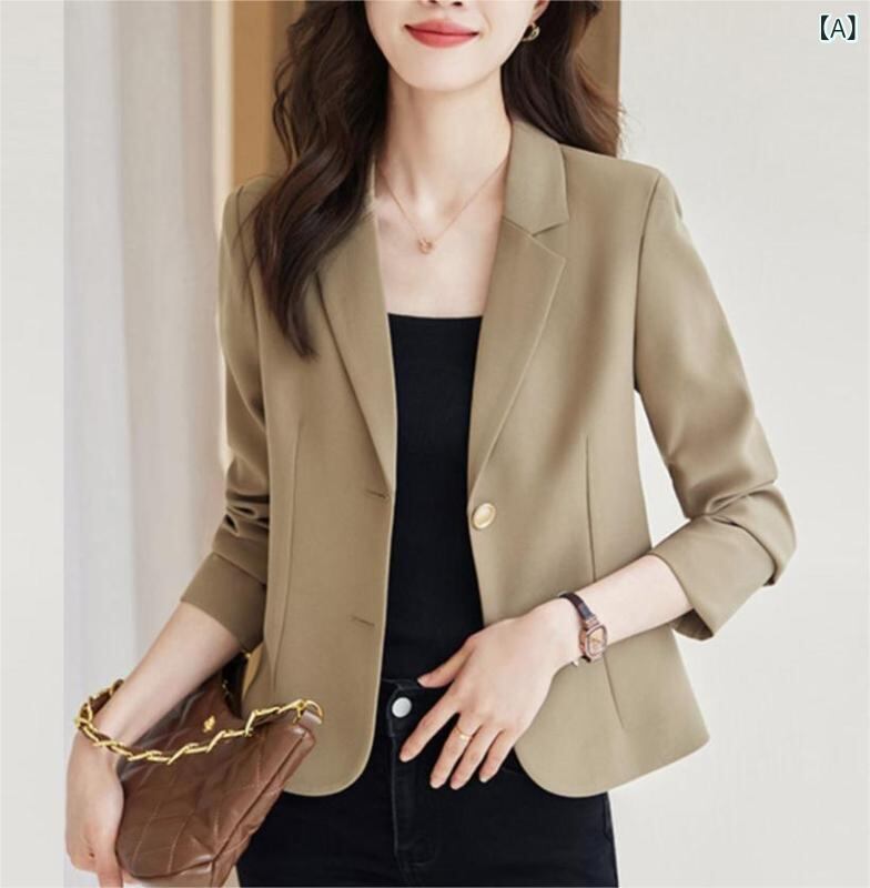 テーラードジャケット レディース 小柄 ショート丈 上品 きれいめ 通勤 オフィス 無地 長袖 ポリエステル シワになりにくい 秋アウター カーキ アイボリー ブラック
