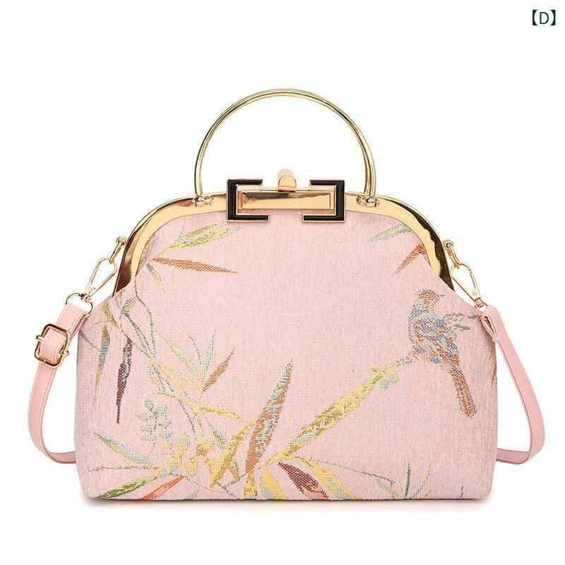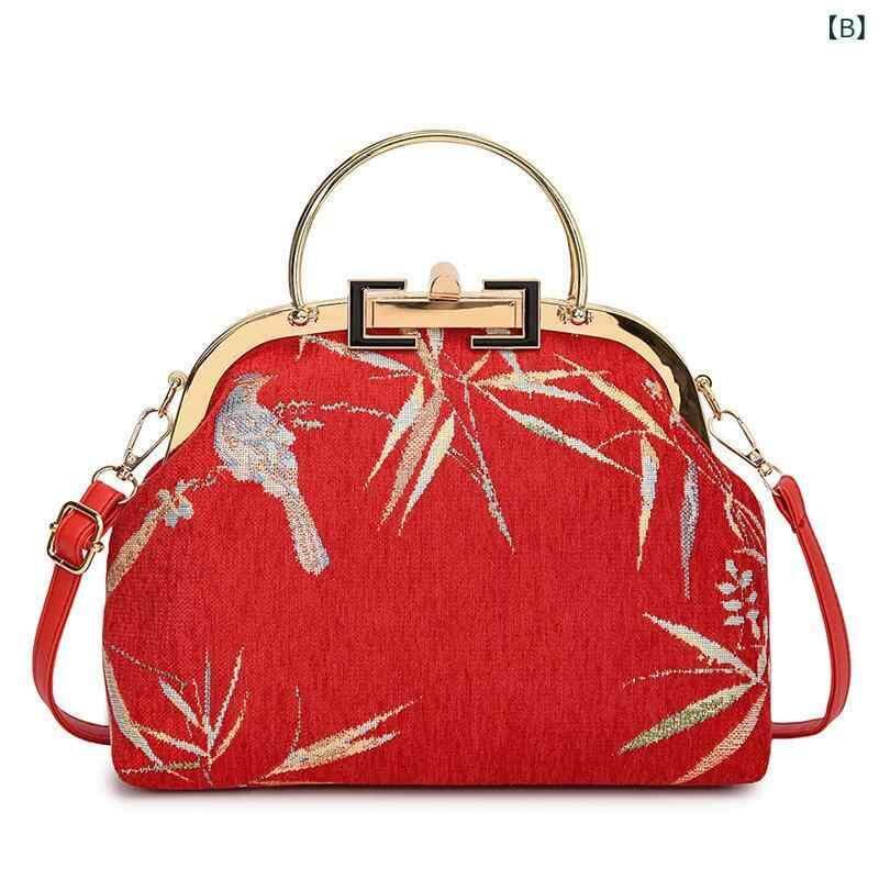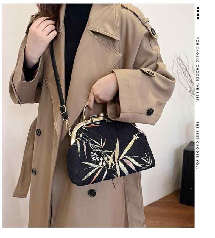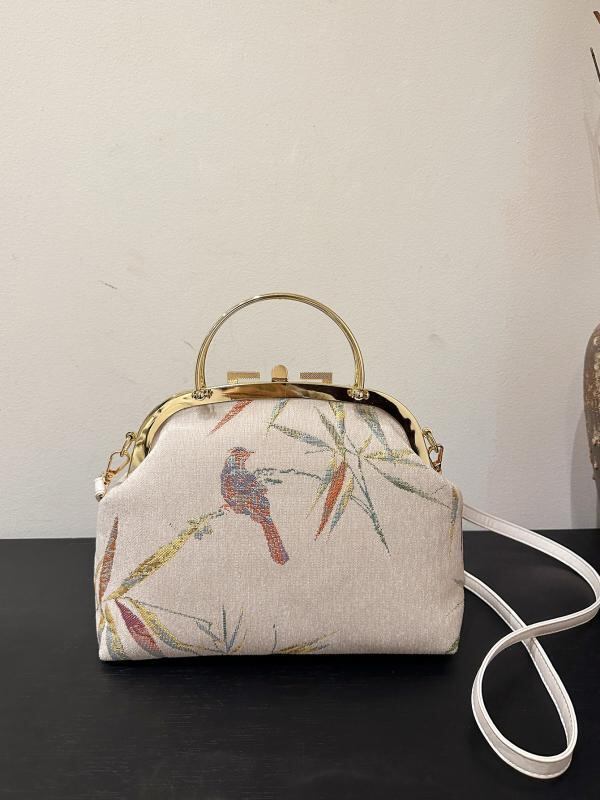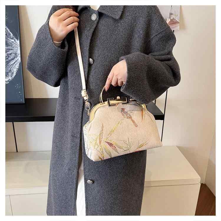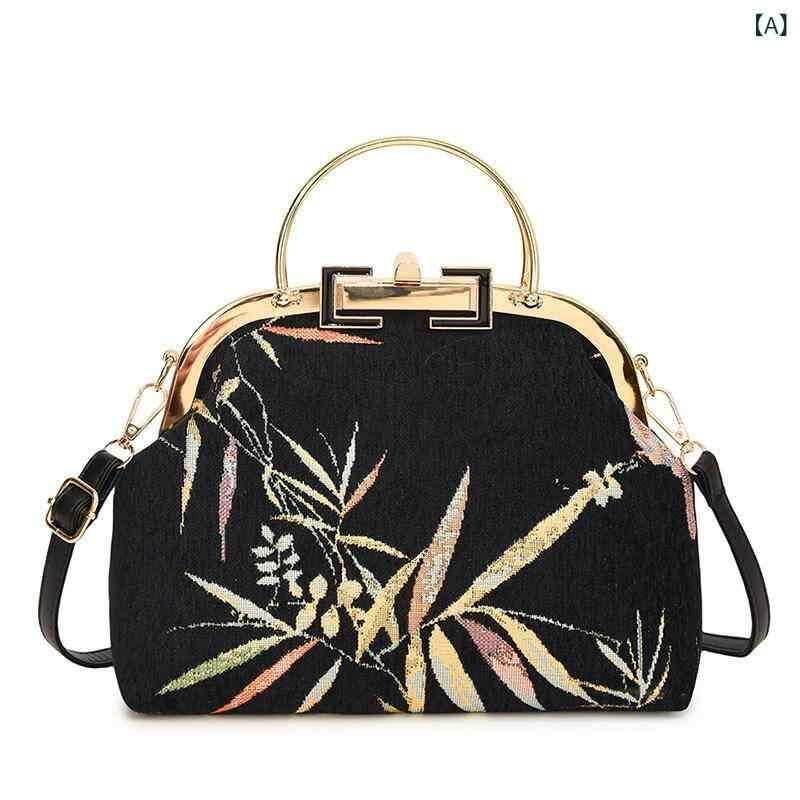 ショルダーバッグ レディース 女性用 ミニ がま口 レトロ ヴィンテージ 刺繍 チャイナドレス柄 チェーン 斜め掛け スクエア型 フェイクレザー おしゃれ カジュアル ロック金具