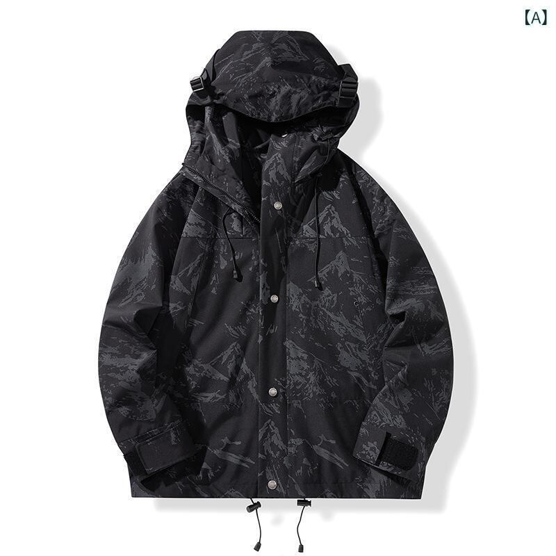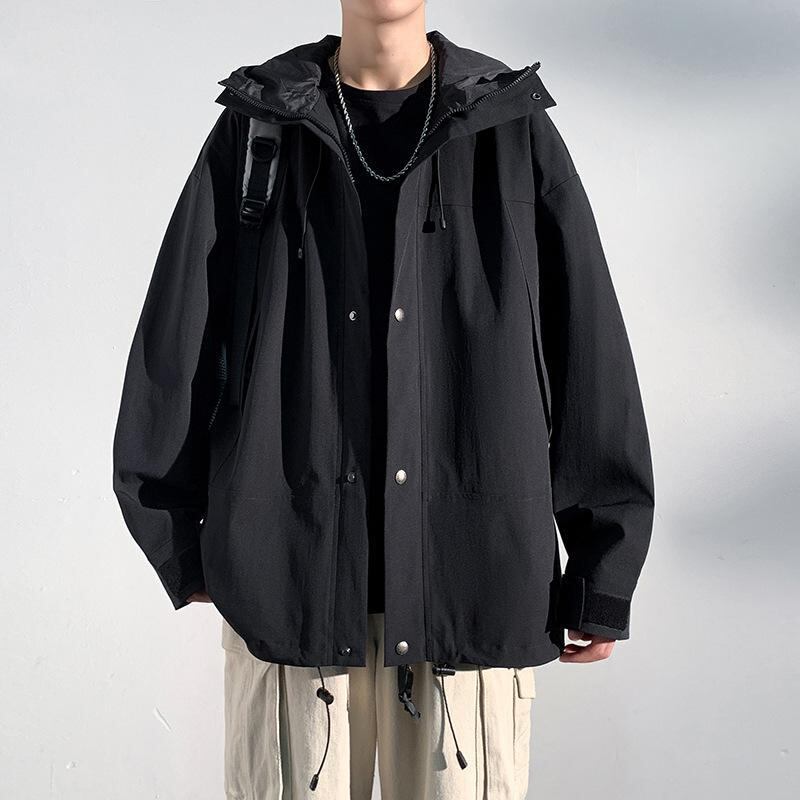 マウンテンパーカー メンズ 男性用 春秋 ワークジャケット スタイリッシュ カジュアル 防水 防風 フード付き 無地 ブルゾン ジャンパー アウター