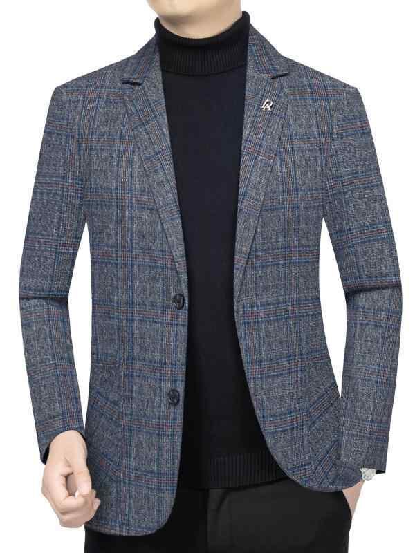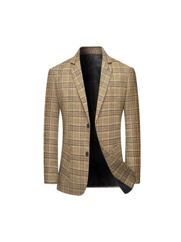 ジャケット 男性用 中高年 春夏 お洒落 カジュアル テーラード スリムフィット 韓国風 チェック柄 シングルブレスト 2つボタン ポリエステル混紡 通気性 防風 形態安定 ビジネス 通勤 普段使い