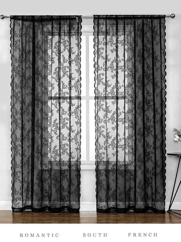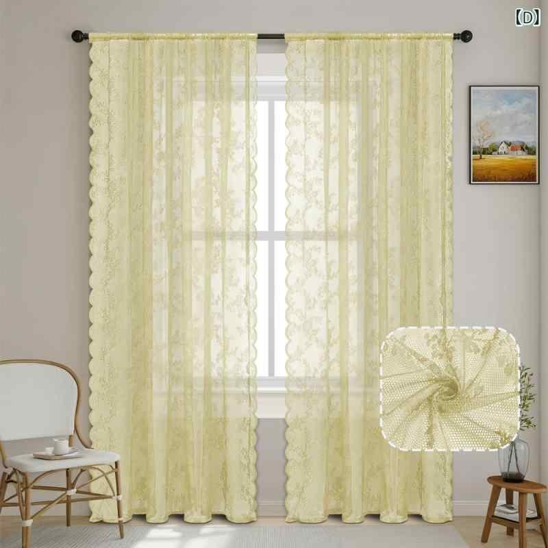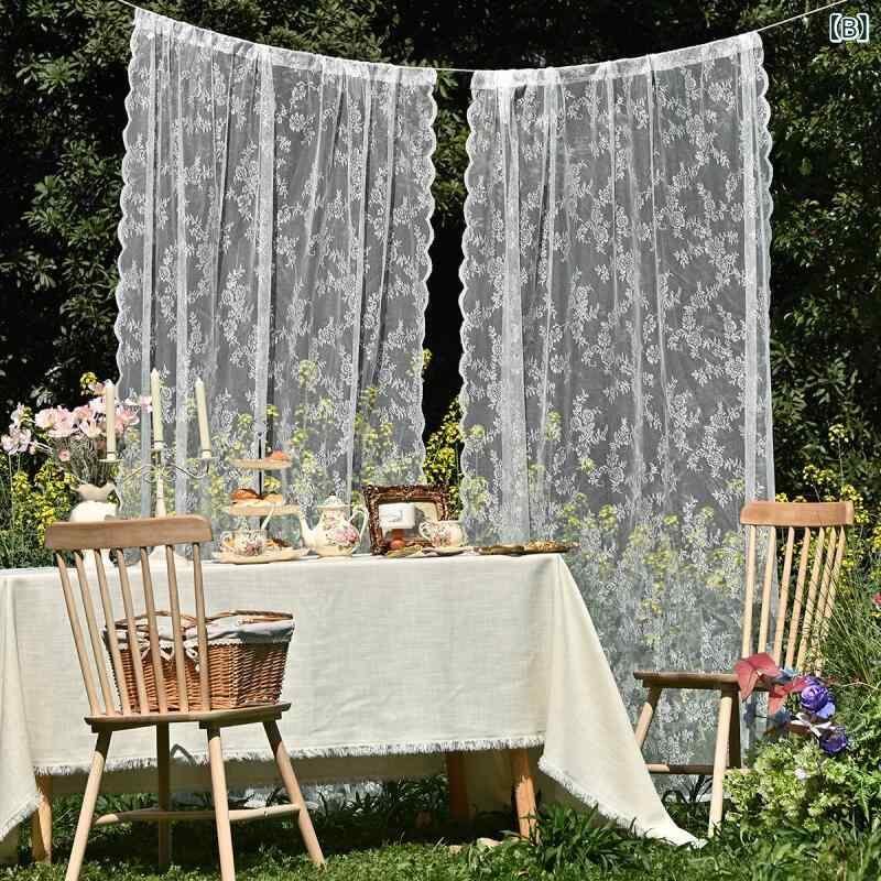 カフェカーテン フレンチスタイル レースフリル 花柄 半遮光 目隠し プライバシー保護 ポール通し 突っ張り棒対応 小窓用 玄関 リビング キッチン 寝室 ポリエステル 既製