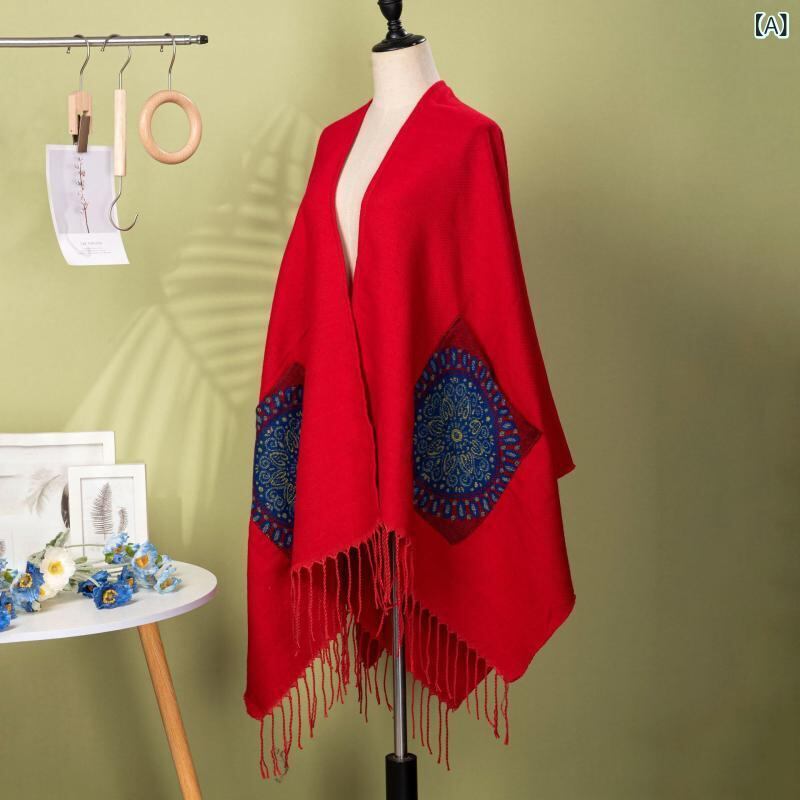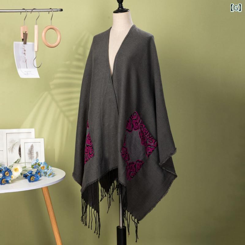 ショール レディース 民族風 レトロ ジオメトリック柄 プリント フリンジ ストール ポンチョ ケープ アウトドア 旅行 羽織り 保温性 ポリエステル アクリル 無地 万能 多色展開