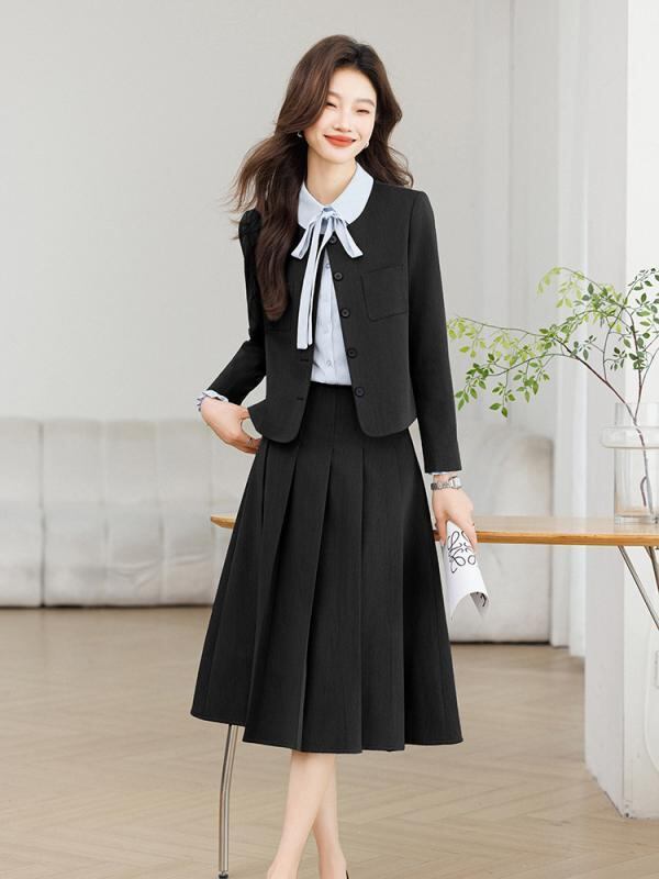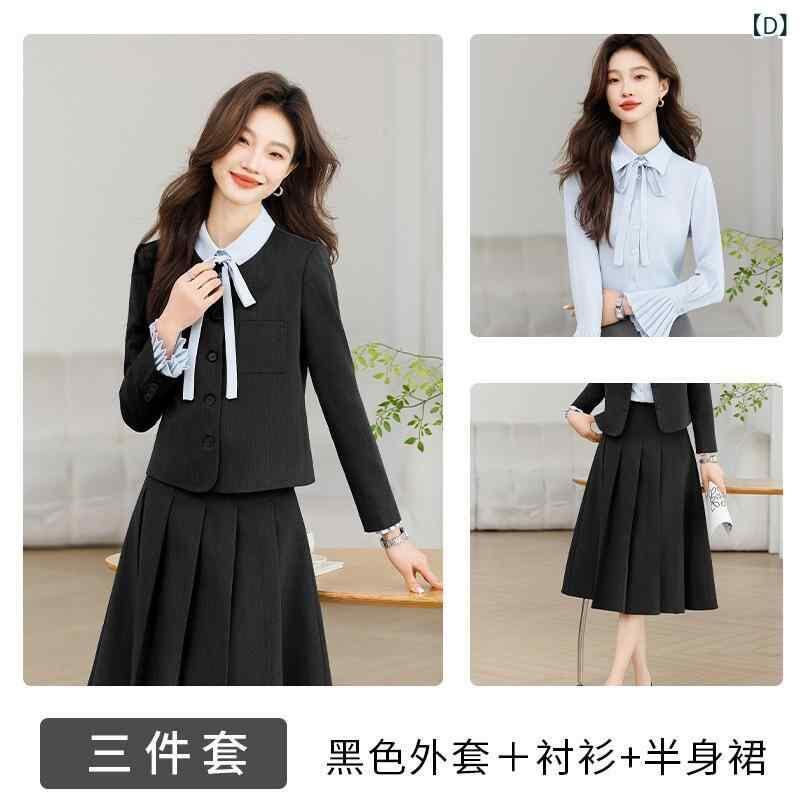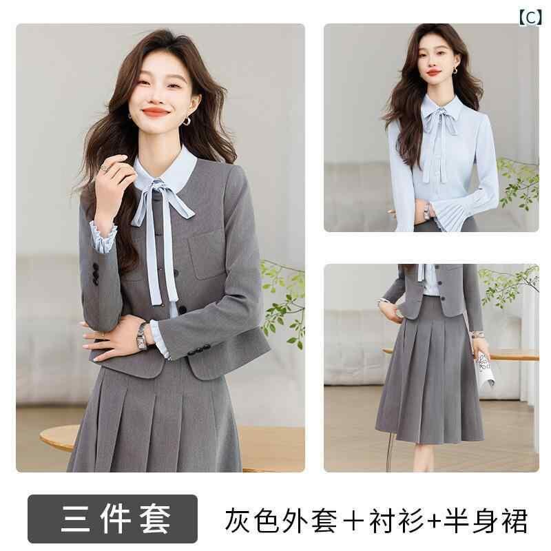 スカートスーツ レディース 学院風 スクールテイスト 上品 エレガント 春夏 面接 ビジネス フォーマル 就活 転職 通勤 オフィス テーラードジャケット 長袖 スリムフィット ポリエステル セットアップ