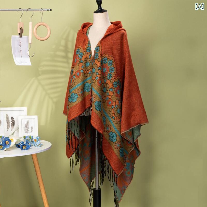 ["ショール レディース レトロ 民族風 エスニック 花柄 フード付き フリンジ デザイン 旅行 トラベル 写真撮影 防風 保温 カーディガン 羽織り ポリエステル アクリル オールシーズン", ""]
