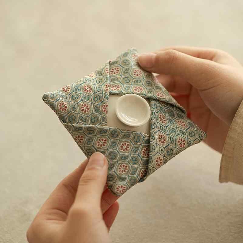 茶器収納バッグ 蓋碗 急須 茶杯 携帯用 純綿ジャカード キルティング 衝撃吸収 保護ポーチ 軽量 トラベル