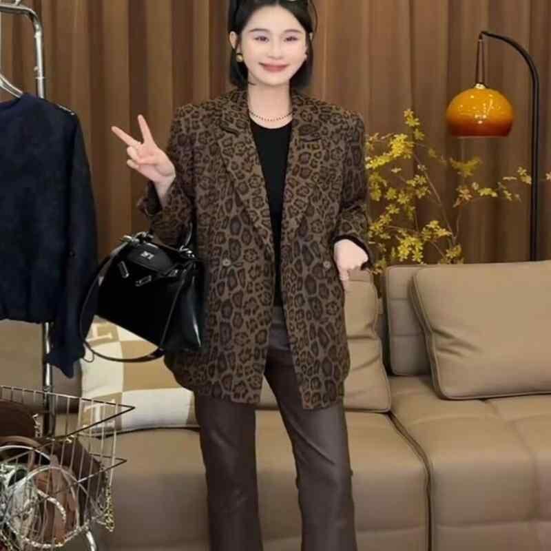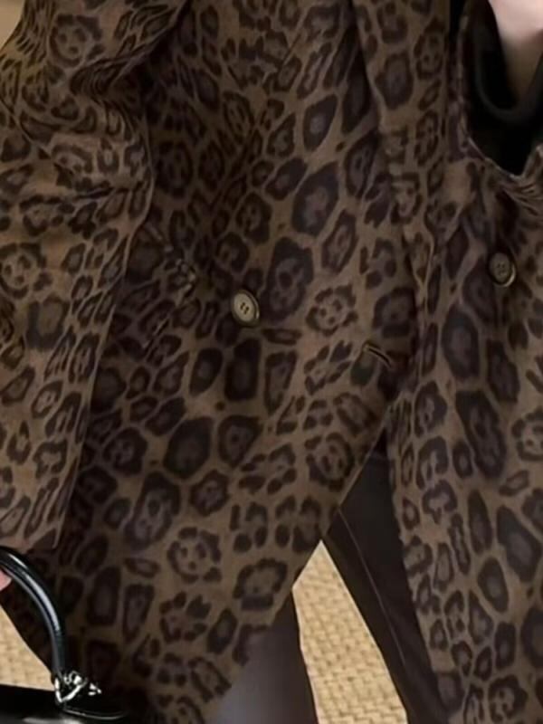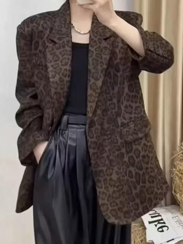 テーラードジャケット レディース 春 レトロ ヒョウ柄 ショート丈 Aライン ポリエステル 一つボタン おしゃれ 着回し 細見え デザイン 上品 エレガント ブレザー アウター