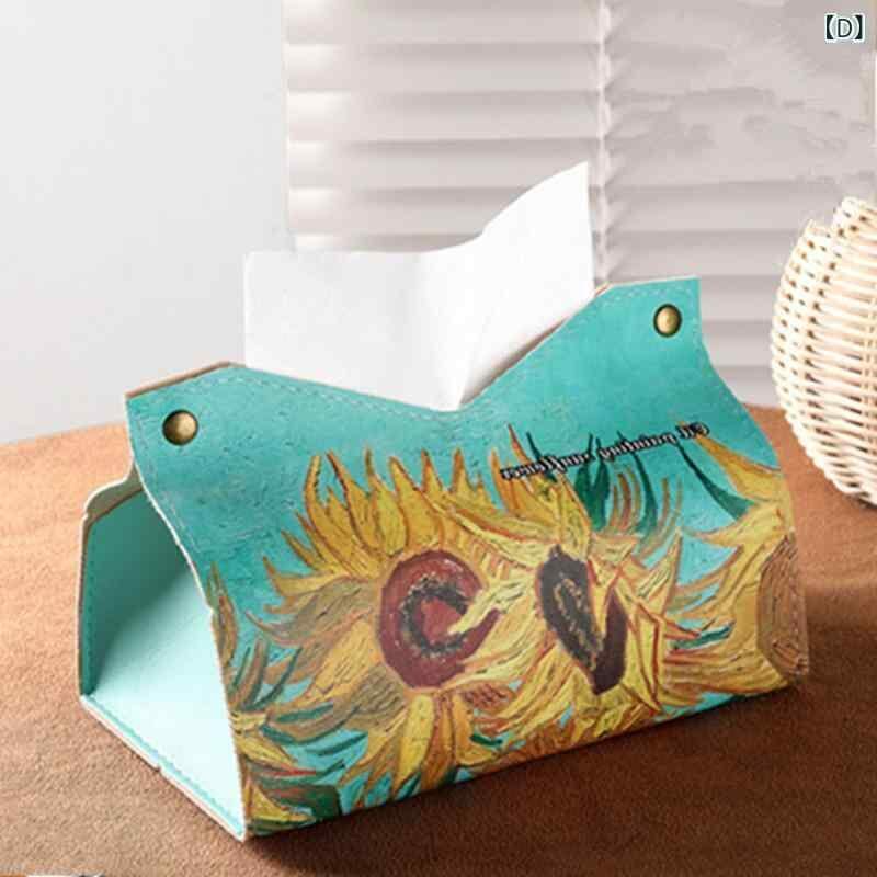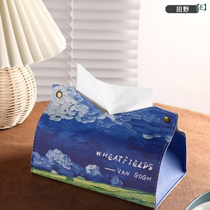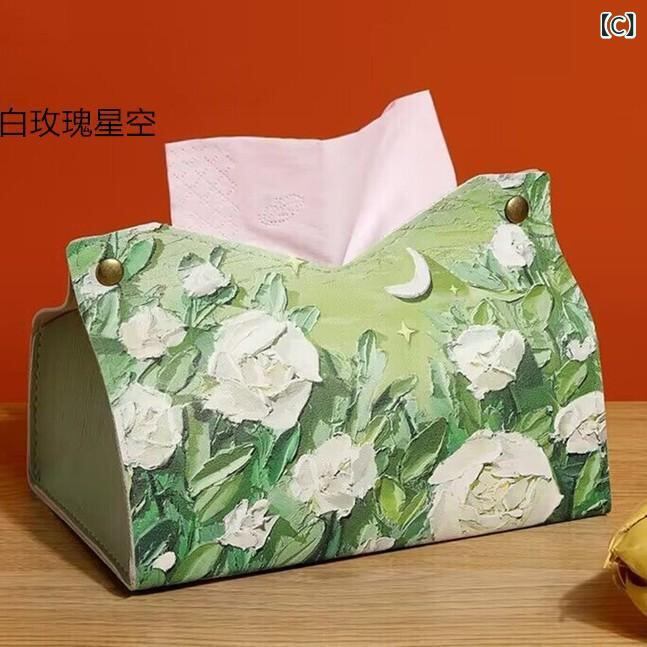 ティッシュケース 油絵風 フラワー柄 レザー調 高級感 エレガント おしゃれ 田園風 カントリー調 リビング 卓上 車内 洗面所 食卓 多用途