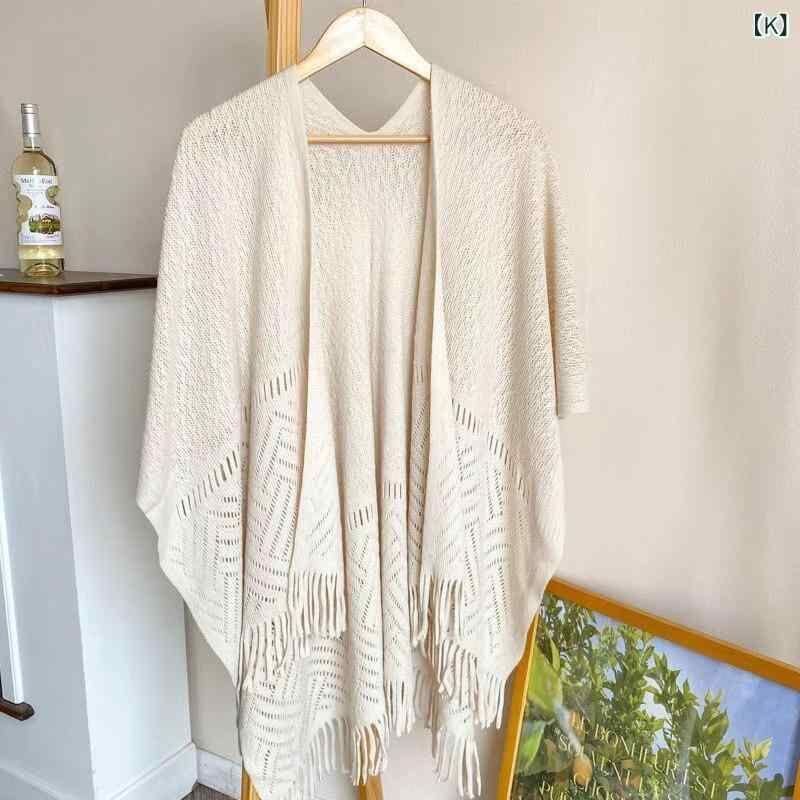 ショール レディース 女性用 レトロ エスニック グラデーション 透かし編み ニット タイダイ染め 高級感 冷房対策 羽織り ミドル丈 ポリエステル 春夏 ファッション小物 トラベル