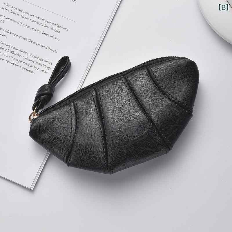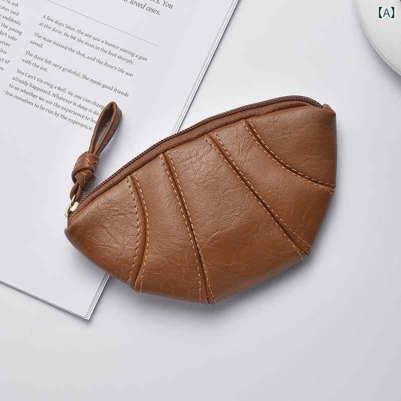 小銭入れ ユニセックス インフルエンサー クロワッサン型 レトロ ヴィンテージ おしゃれ 高見え 個性的 ニッチ 携帯用 コンパクト ミニ財布 リップケース ファスナーポーチ ジッパーポーチ PUレザー ブラック ブラウン シルバー イエロー 普段使い