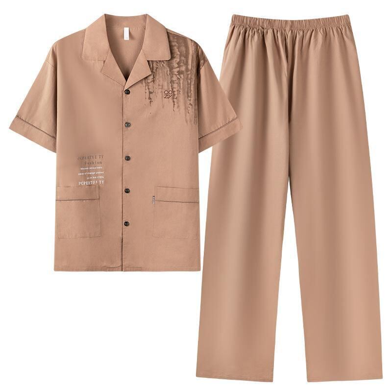 パジャマ メンズ 男性用 セットアップ 上下セット 綿100% コットン 薄手 夏 サマー 半袖 長ズボン ロングパンツ 大きいサイズ ゆったり ルームウェア 部屋着 ホームウェア 開襟 快適 通気性 普段使い カジュアル