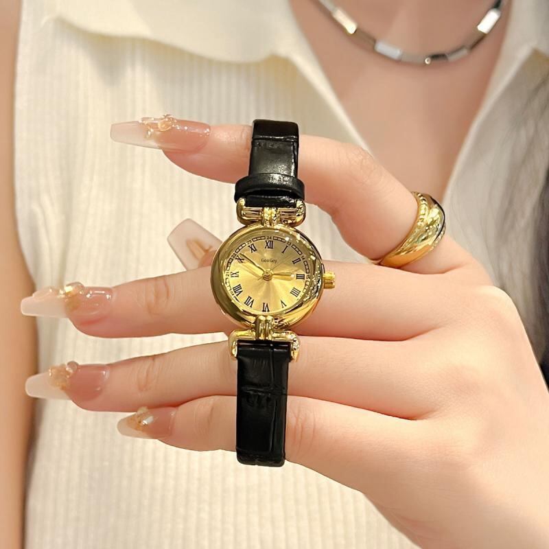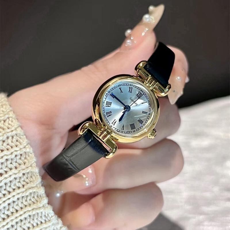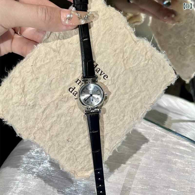 腕時計 レディース レトロ ヴィンテージ フレンチ ライトラグジュアリー 個性派 おしゃれ シンプル エレガント ミニ ラウンド クォーツ時計 学生 通勤 オフィス 普段使い レザー 革ベルト 上品 薄型