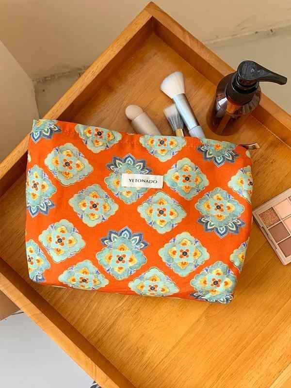 ポーチ レディース 女性用 大容量 民族調 エスニック柄 携帯用 ポータブル かわいい おしゃれ 高級感 メイク コスメ スキンケア用品 収納 クラッチバッグ ハンドバッグ 旅行 トラベル お出かけ 普段使い デイリー ポリエステル製 幾何学模様