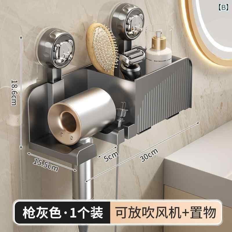 ドライヤーホルダー 浴室 洗面所 吸盤 壁掛け プラスチック製 家庭用 収納ラック ウォールラック 省スペース 手間いらず 整理整頓 アイボリー ガンメタリック シンプル モダン