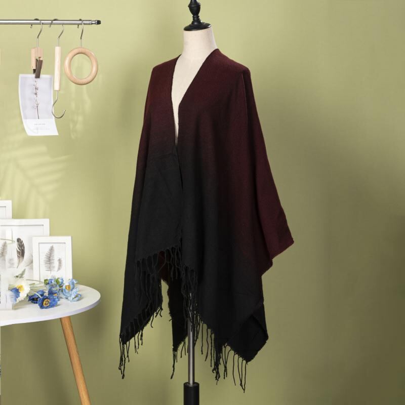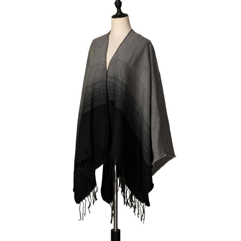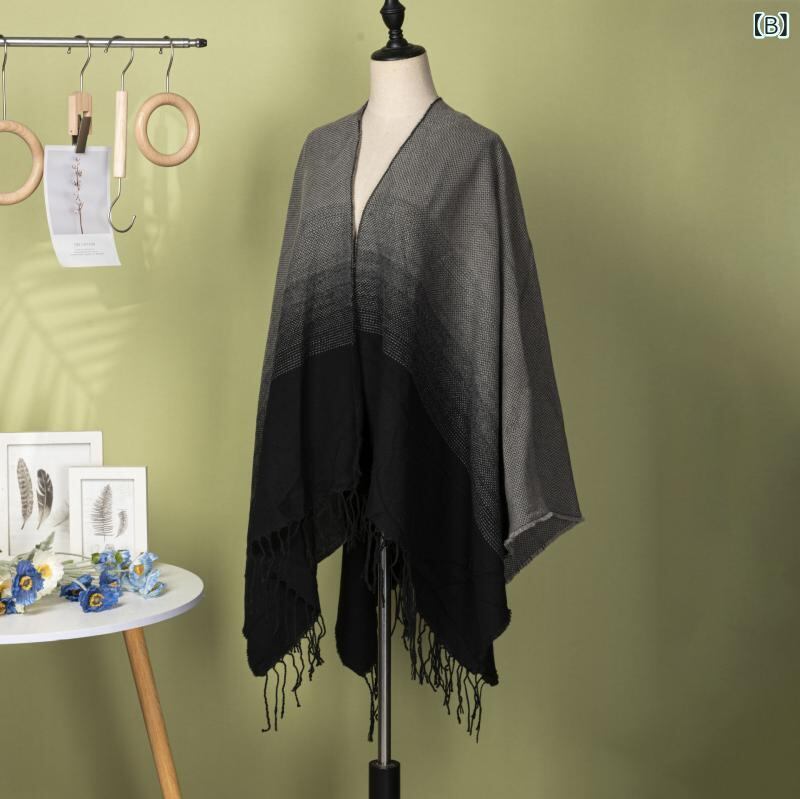 ポンチョ 男女兼用 グラデーションカラー フリンジ レトロ 暖かい 防寒 着回し カーディガン ケープ ポリエステル アクリル 旅行 キャンプ アウトドア エアコン対策 羽織り