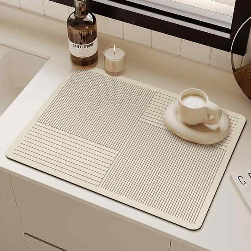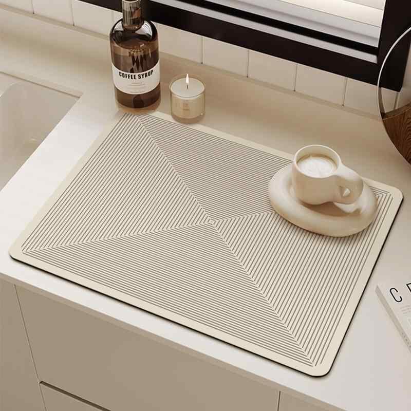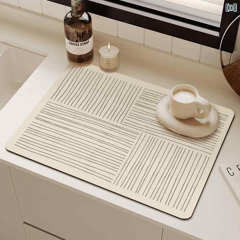 水切りマット 高級感 シンプル キッチン 台所 シンク周り 珪藻土 吸水 速乾 ドライングマット 滑り止め付き テーブル 卓上 コーヒーマシン 断熱 遮熱 スクエア 防汚