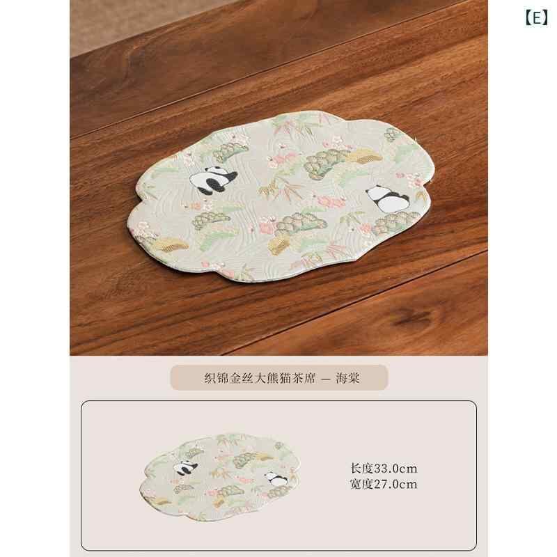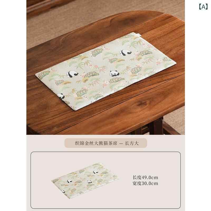 茶席 ティーマット 錦織 パンダ柄 金糸 両面 厚手 ロング 長方形 断熱 家庭用 中国式 中華風 新中式 茶道 茶道具 布製 テーブルクロス ランチョンマット