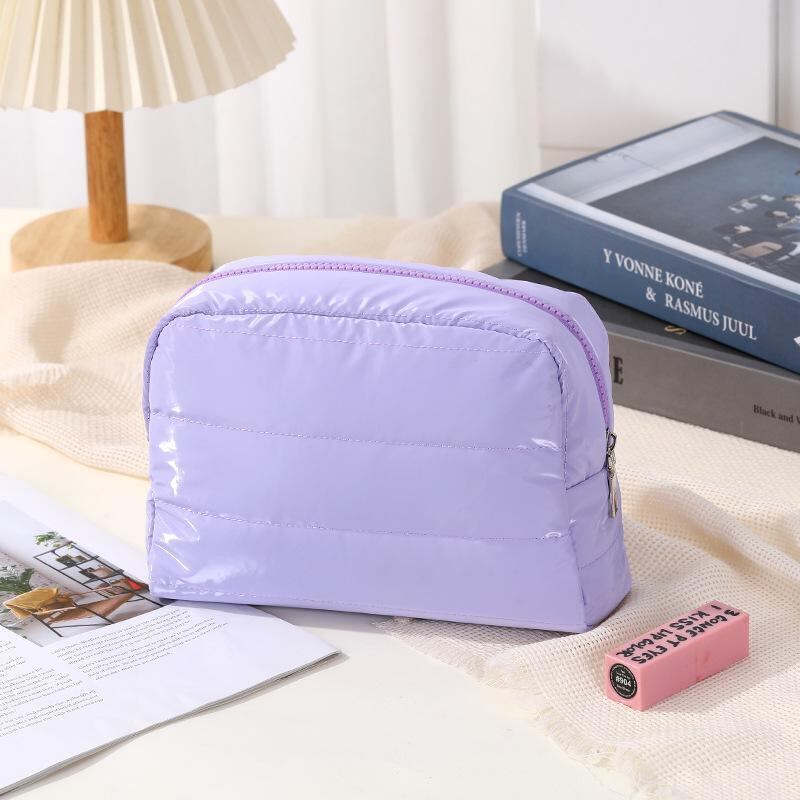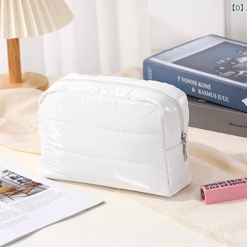 ポーチ 男女兼用 ナイロン キルティング 多機能 ファスナー 化粧ポーチ コスメポーチ トラベルポーチ 洗面用具収納 携帯用 刺繍 秋冬 シンプル 防水 ライトグリーン ピンク ブラック
