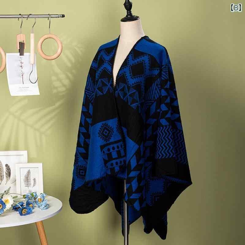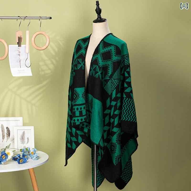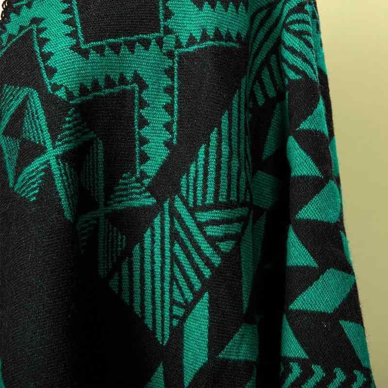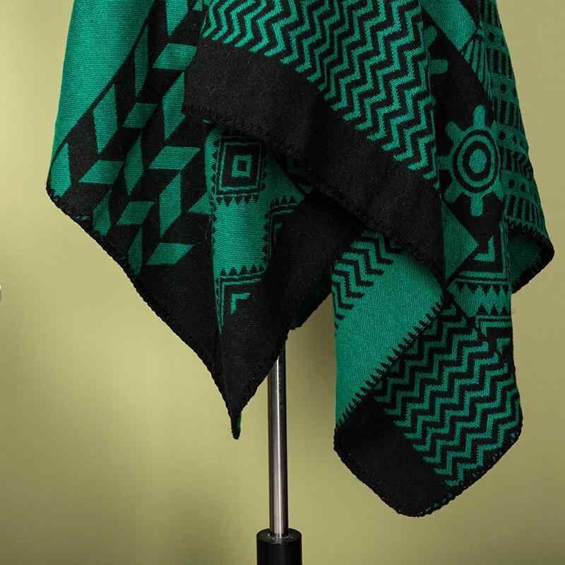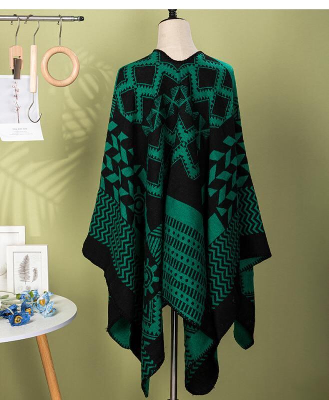 ポンチョ レディース 幾何学柄 切り替えデザイン ニット 高級感 カシミヤ風素材 ゆったり ドルマンスリーブ 旅行 お出かけ 撮影 羽織り ストール ケープ 暖か 防寒 グリーン ブルー