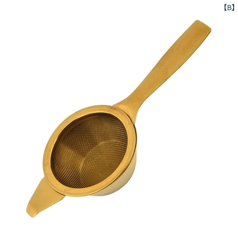茶こし 304ステンレス シングルハンドル 両耳 茶葉ストレーナー 紅茶 緑茶 日本茶 中国茶用 細目網 ティーフィルター モダン シンプル 新中式デザイン 耐久性 衛生的 ポット マグカップ対応 原色 ゴールド