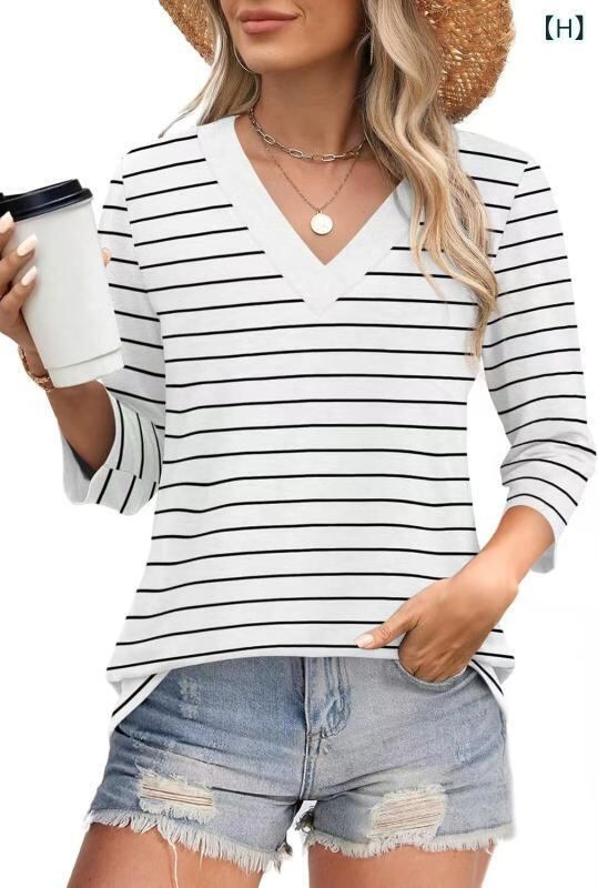 ・カテゴリ: ニット・主な素材: コットン、スパンデックス・柄: 無地・厚さ: 薄手・形式: 単品・スタイル: プルオーバー・シルエット: レギュラーフィット・袖タイプ: レギュラー袖・ネックライン: Vネック・袖丈: 七分袖・着丈: 50~65cm・加工: ノンアイロン・カラー展開: ミントグリーン、ブルー、ブラック、ライトピンク、ブルーグリーン、ダークグリーン、ローズ、ホワイトストライプ、ブラックストライプ、ブライトピンク、ライトパープル、ホワイト、ダスティピンク、ピンク、パープル・サイズ展開: S, M, L, XL, XXL・テイスト: シンプル、ストリートカジュアル、快適カジュアル