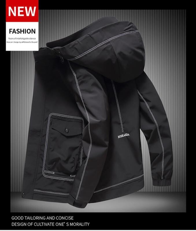 アウター メンズ 大きいサイズ ビッグシルエット ゆったり スタンドカラー フード付き マウンテンパーカー ブルゾン ライトアウター カジュアル イージーケア 春秋
