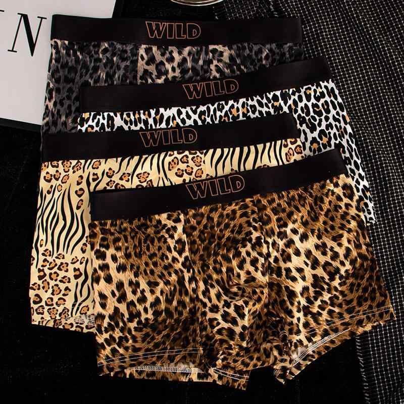 メンズ ボクサーパンツ まとめ買い ヒョウ柄 セクシー 高級感 接触冷感 シルクのような肌触り 軽量 薄手 通気性 伸縮性 シームレス ミドルライズ ナイロン 再生繊維 オールシーズン