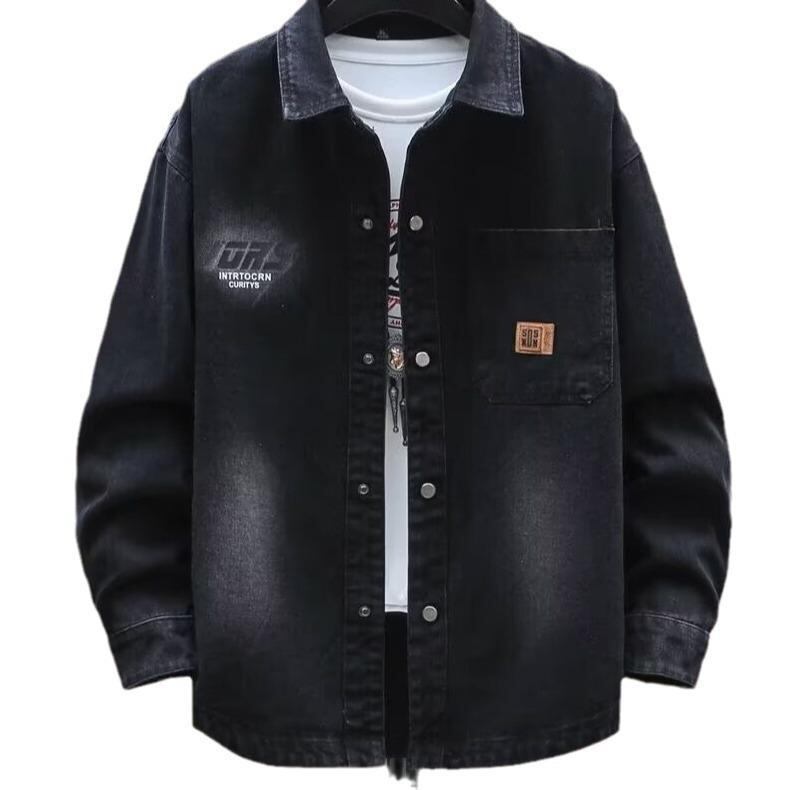 デニムジャケット メンズ Gジャン 男性用 高校生 大学生 ティーン アウター ブルゾン ゆったり ルーズフィット オーバーサイズ 襟付き 長袖 無地 カジュアル ストリート 春秋 おしゃれ かっこいい 配色デザイン 韓流 ポリエステル ブラック ブルー