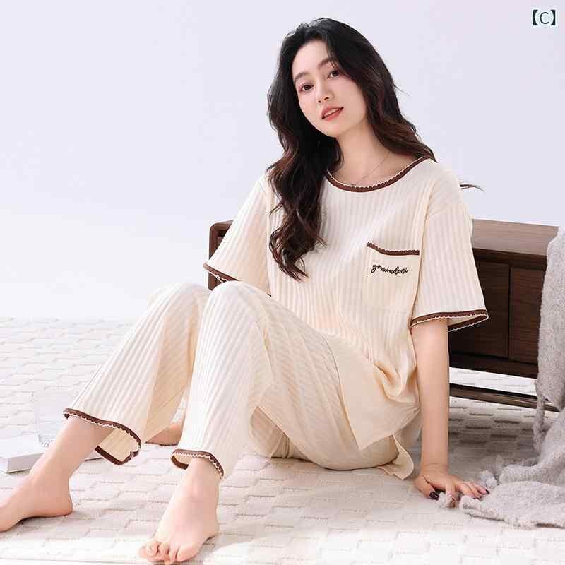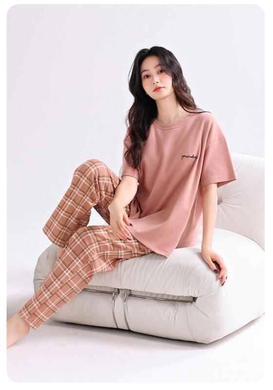 パジャマ レディース 春夏 薄手 半袖 長ズボン セットアップ 綿100% コットン100% ルームウェア 部屋着 大きいサイズ ゆったり 体型カバー カジュアル リラックス 涼しい 快適 通気性 伸縮性 プルオーバー 丸首