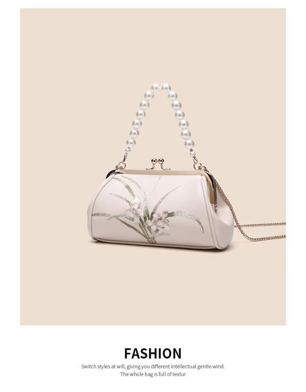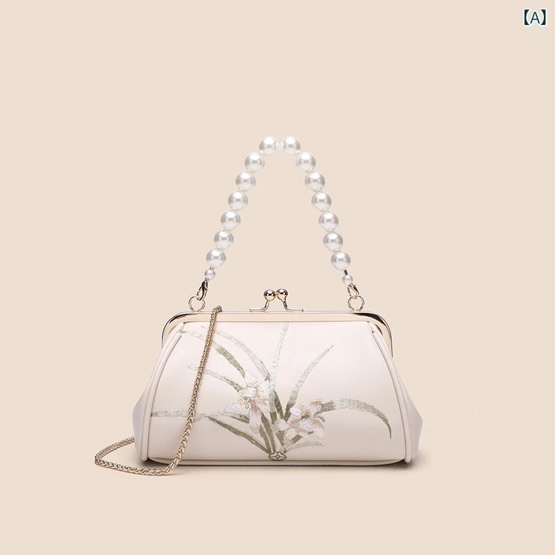 バッグ レディース 女性用 がま口バッグ ハンドバッグ ショルダーバッグ 斜めがけ 手提げ 刺繡 レトロ アンティーク 中国風 オリエンタル おしゃれ 上品 パーティー 結婚式 お呼ばれ チャイナドレス 漢服 和装 着物 PUレザー アイボリー 普段使い
