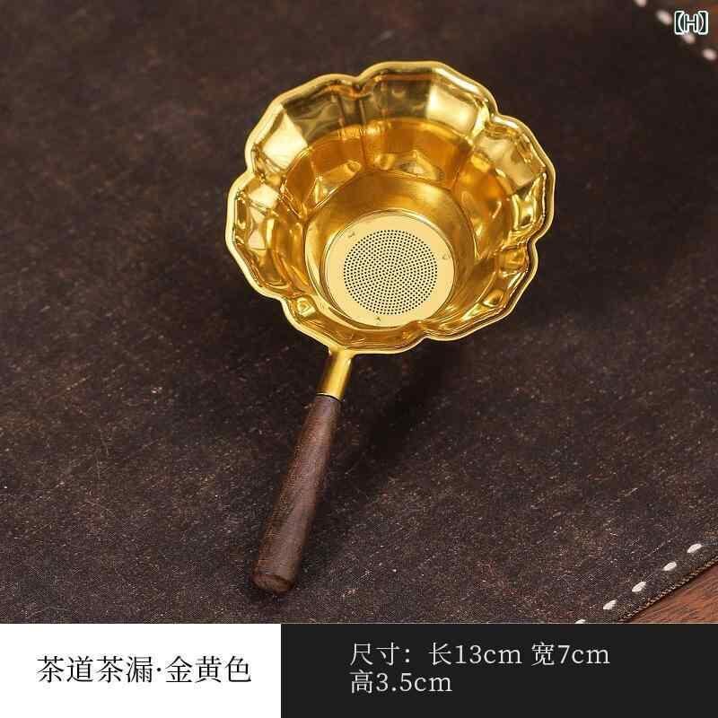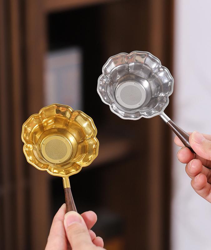 茶こし 蓮の花 304ステンレス鋼 茶葉フィルター 中国茶器 公道杯用 フィルターネット 金色 銀色 黒檀木ハンドル ライトラグジュアリー レトロ