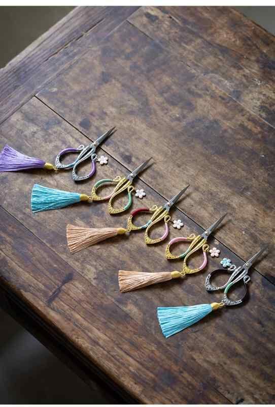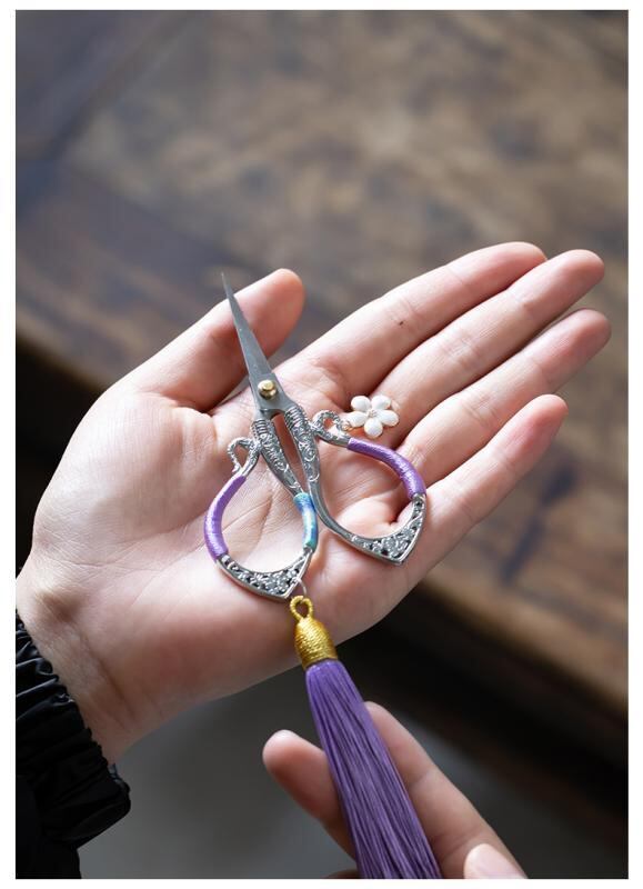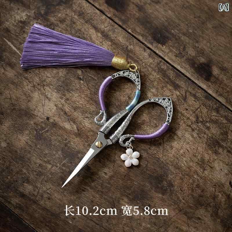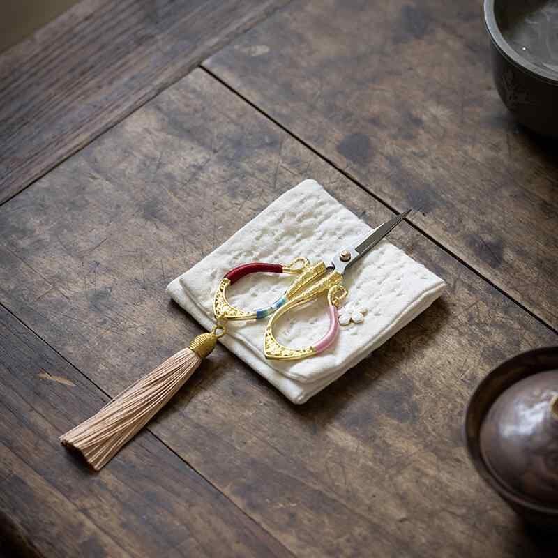茶剪 レトロ クラシック 中国風 中華風 ミニ 小型 ステンレス製 茶葉カット ティーバッグ用 家庭用 茶道 茶道具 アクセサリー タッセル飾り 花柄 おしゃれ かわいい 多色展開