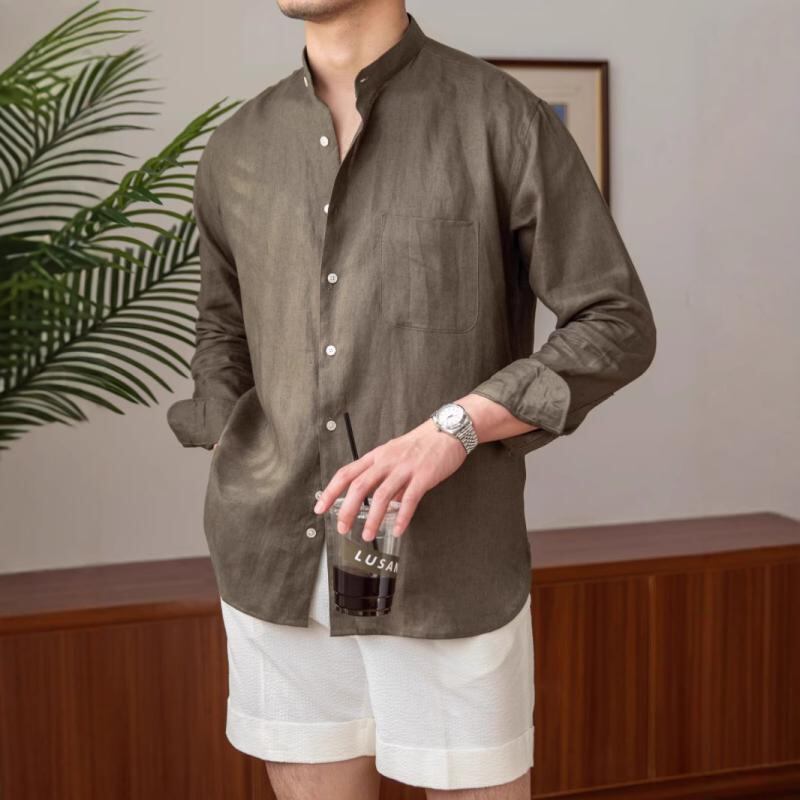 シャツ メンズ 男性用 リネン 麻混 長袖 ロングスリーブ スタンドカラー 立ち襟 通勤 オフィス ビジカジ きれいめカジュアル リゾート ゆったり リラックスフィット 春夏