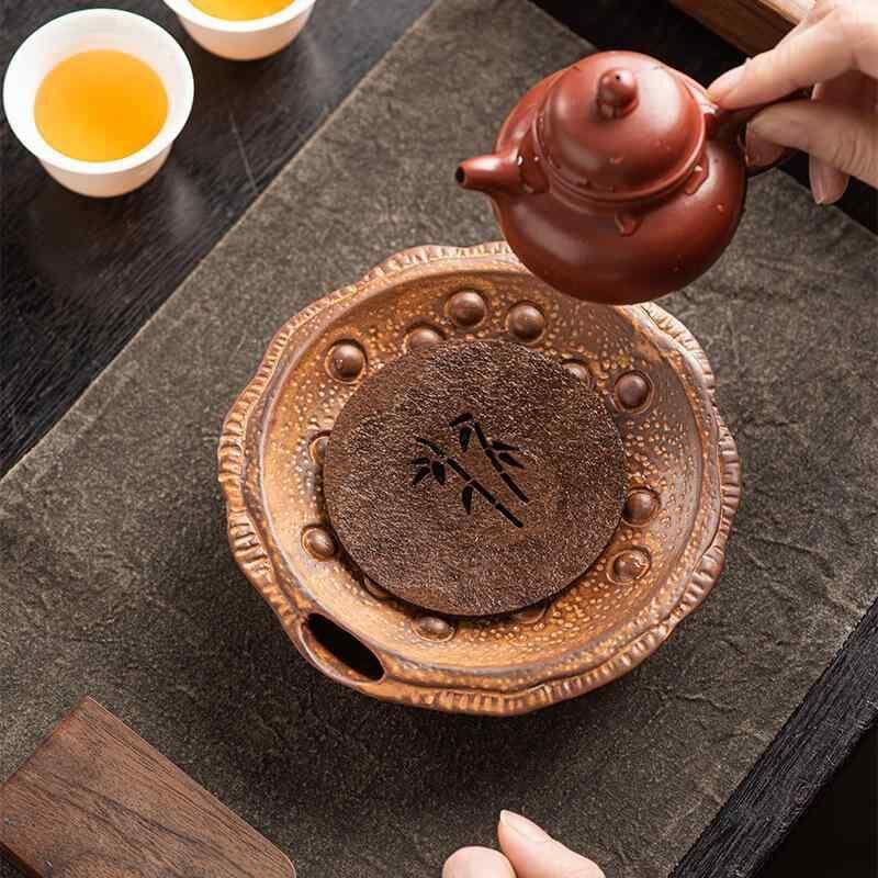 茶盤 新中国風 蓮の花托 粗陶 貯水式 断熱マット 家庭用 工夫茶器 乾式茶盤 茶道具 ライトブラウン