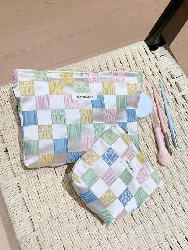 ポーチ レディース 女性用 化粧 収納 大容量 携帯用 トラベル 高級感 日常使い 普段使い クラッチバッグ ポリエステル チェック柄