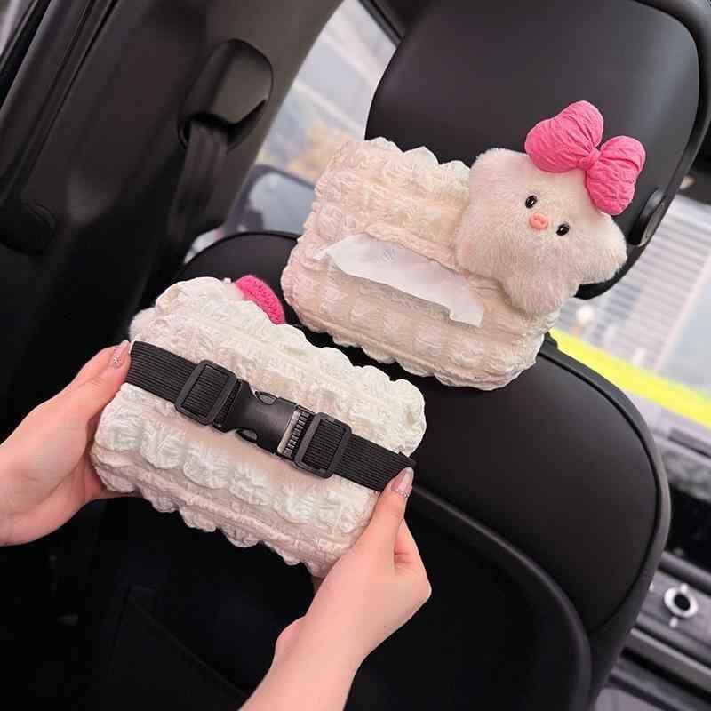 ティッシュケース レディース 女性用 車載 車内アクセサリー ドライブ ヘッドレスト取付 吊り下げタイプ フェイクレザー 合皮 かわいい おしゃれ ピンク系 袋ティッシュ対応 ボックス型 便利グッズ