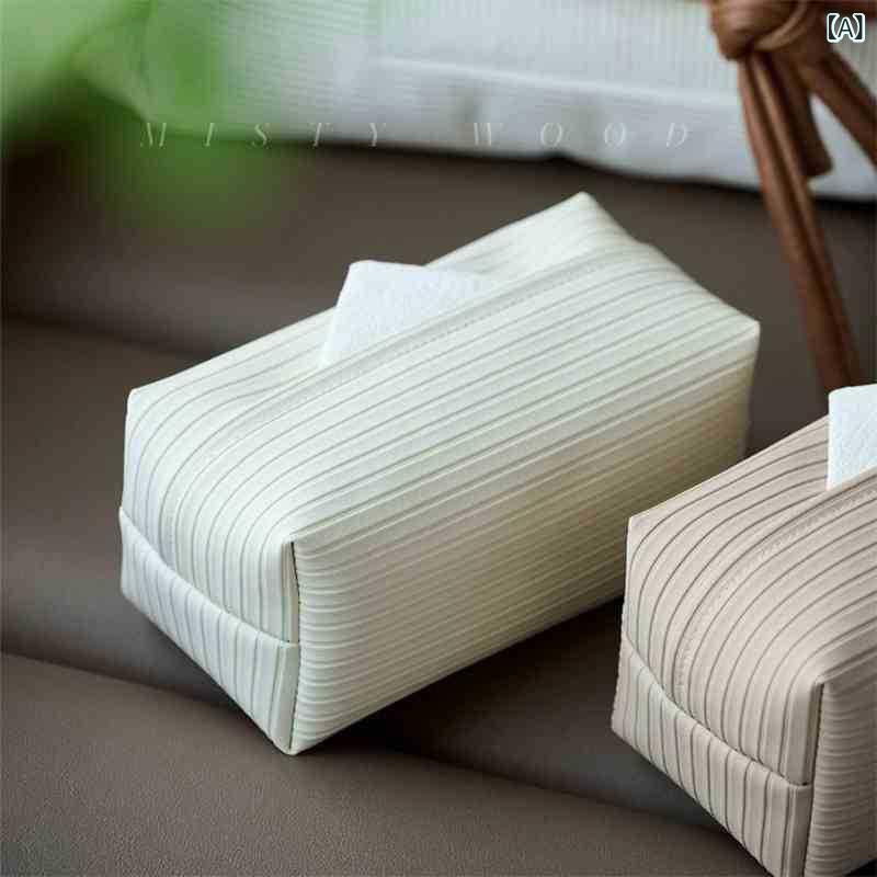 ティッシュケース シンプル ストライプ レザー調 合皮 アイボリー ベージュ ブラウン系 リビング ダイニング 卓上 車載用 防水 多機能 収納ボックス 高級感 エレガント