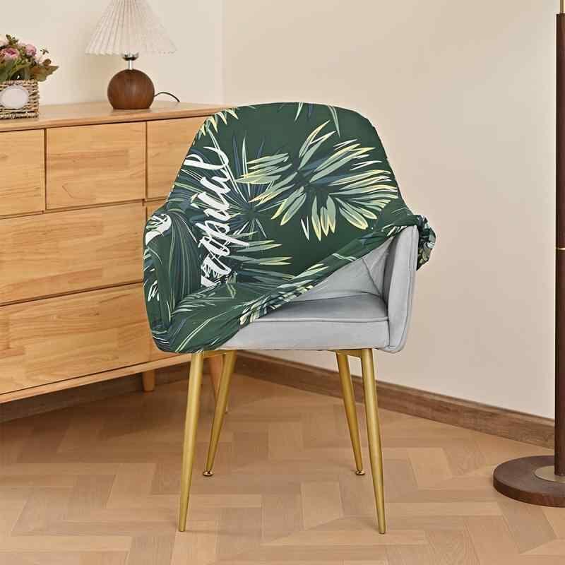 チェアカバー 曲線型 ダイニングチェア用 ポリエステル ストレッチ素材 植物柄 プリント 防塵 汚れ防止 耐久性 モダン シンプル 模様替え