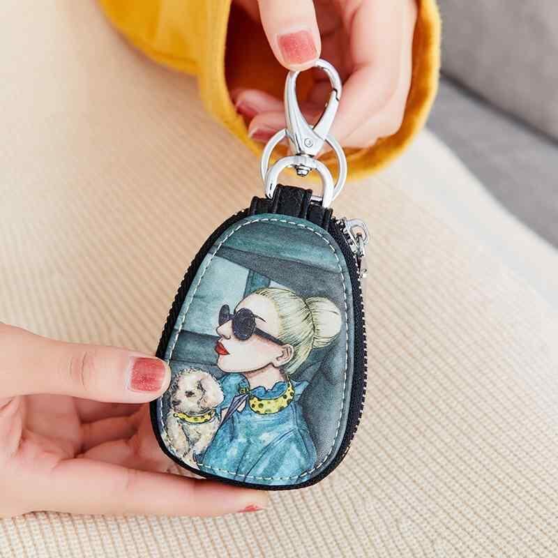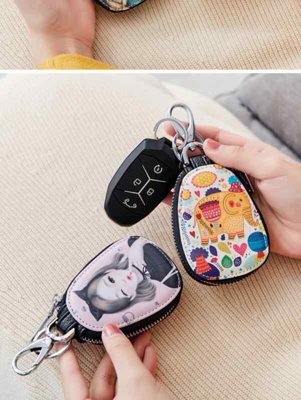 キーケース レディース 多機能 ファスナー開閉 スマートキー対応 かわいい おしゃれ キャラクターデザイン PUレザー カラビナ付き 普段使い お出かけ ミニポーチ