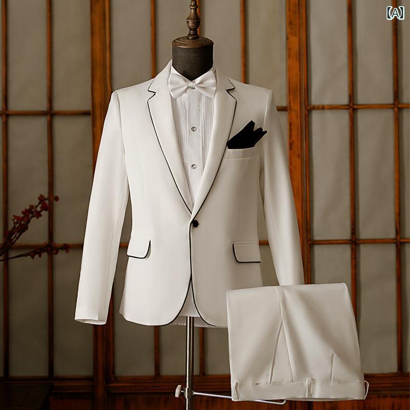 スーツ メンズ 男性用 司会者 MC ステージ 舞台衣装 演出服 セットアップ 大きいサイズ ビッグサイズ ゆったり フォーマル 礼服 パーティー 宴会 結婚式 二次会 軽量 薄手 ポリエステル ポリ混紡 ホワイト 白