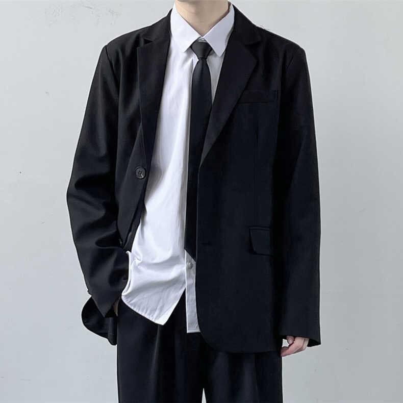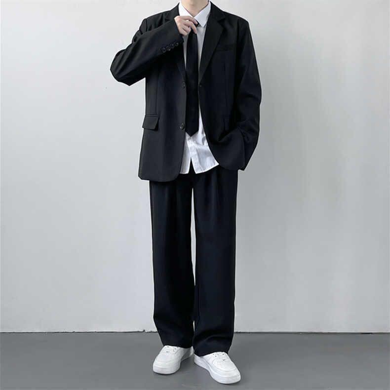 テーラードジャケット メンズ 大きいサイズ ゆったり スクールテイスト 学生向け 長袖 無地 ポリエステル シングルブレスト 2つボタン 高級感 セットアップ スラックス 春秋 普段使い
