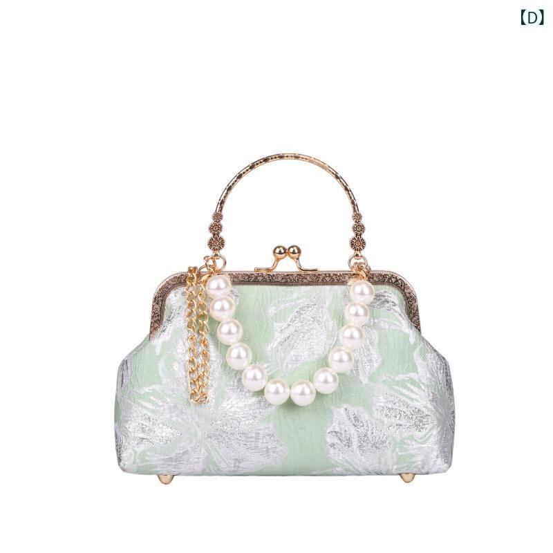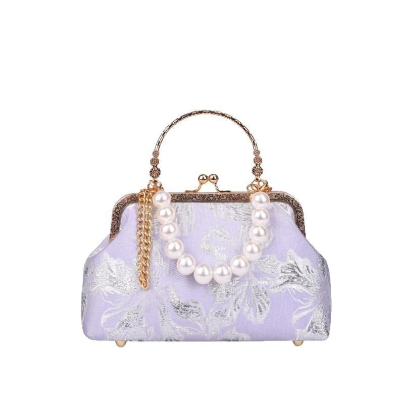 バッグ レディース レトロ チャイナドレス風 フェイクパール がま口 口金 布製 手提げ ワンショルダー 斜め掛け イブニング パーティー 結婚式 フォーマル 上品 エレガント 春夏